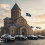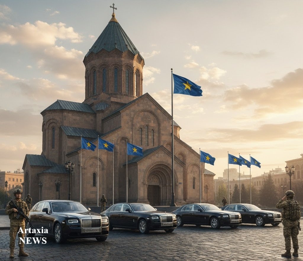 Após uma visita à Catedral de Sarkis em Yerevan, na Região Especial da Armênia, território do Reino de…
